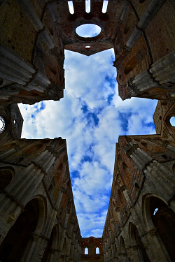San Galgano metafora dell'Unione Europea... ------------------- Per raffigurare l’Europa, non c’è immagine più eloquente di San Galgano. San Galgano: per chi non lo conosce dirò che era un cavaliere crociato che, dopo aver combattuto ed ammazzato per una vita intera, in vecchiaia rientrò nella sua patria senese, e si “ravvide”. Quindi, piantò la sua spada nella fessura di una roccia, sulla sommità di un masso vicino al paese di Chiusdino, e si inginocchiò in mistico raccoglimento. Poiché la spada ha, per il cavaliere crociato, questa sua magnifica particolarità: di essere allo stesso tempo un’arma da guerra e (per la sua forma) l’immagine della croce. In pratica, è un crocefisso tagliente, da brandire per trafiggere l’infedele al fine di donargli con forza la Fede e, insieme, una morte violenta purificatrice. Oggi purtroppo ci manca un così efficace strumento di ravvedimento forzoso ed il kalashnikov non svolge lo stesso duplice servizio… Come ho detto, l’immagine di San Galgano per me rappresenta l’Europa. Non il Santo in sé; non la cultura “giudaico-cristiana” che ha ispirato la sua vita e l’ha poi condotto ad un tardivo ed ipocrita ravvedimento; non la sua spada, rimasta infissa fino ad oggi nella roccia, racchiusa sotto la cupola del piccolo e tozzo santuario, che lega quel colle toscano al mito europeo di Camelot. No. Immagine dell’Europa (per meglio dire, dell'Unione Europea) è per me l’abbazia di San Galgano: quella incompiuta, che sorge nella piana ai piedi della spada, fatta di mura maestose, archi arditi, pavimento erboso e per tetto uno spicchio di cielo. Un’opera grandiosa, costosa, magnifica ed inutile. Il paragone tra l’Europa ed una Cattedrale non è mio: è di Enrico Letta. In un suo libro di qualche anno fa, “Costruttori di Cattedrali”, paragonava i Padri dell’Unione Europea agli architetti medioevali, che immaginarono ed iniziarono a costruire opere maestose che sapevano non avrebbero mai viste completate, perché costruirle avrebbe richiesto l’impegno costante ed ispirato di ben più di una generazione, tutti impegnati in un lavoro continuo, sempre fedeli al disegno originario... Invece al cantiere dell’Europa oggi non lavora più nessuno. Questa è l’Unione Europea: niente più che un’intenzione ambiziosa. E ci si litiga sull’interpretazione del disegno originario. Ciò che è stato costruito finora (la moneta) non è sufficiente a rendere l’opera utilizzabile; non c’è più una visione condivisa dell’opera completa, i frati non sono d’accordo su come vada terminata. Anzi, forse, non c’è più nessuno che conservi nella sua memoria una qualche visione dell’opera: è tale l’abitudine a vedere mura traforate nel mezzo del prato, che è sparita persino l’idea di una Cattedrale. Non si condividono più (anzi, nemmeno più si percepiscono) i valori fondanti, e si apprezza solo il valore concreto del materiale da costruzione. Quindi, questa è la situazione: i frati stanno rubando le pietre e le lastre del tetto per rivenderle di nascosto, sottocosto. E la Cattedrale resta un dispendioso ed inutile cantiere piantato nel mezzo della vallata, destinato ad essere presto abbandonato per lasciare alla posterità un monumento grandioso e senza scopo, sfarzoso ed inutile, magnificentissimo per la sua splendida incompiutezza. Troppo bella per essere abbattuta, troppo costosa per essere terminata.